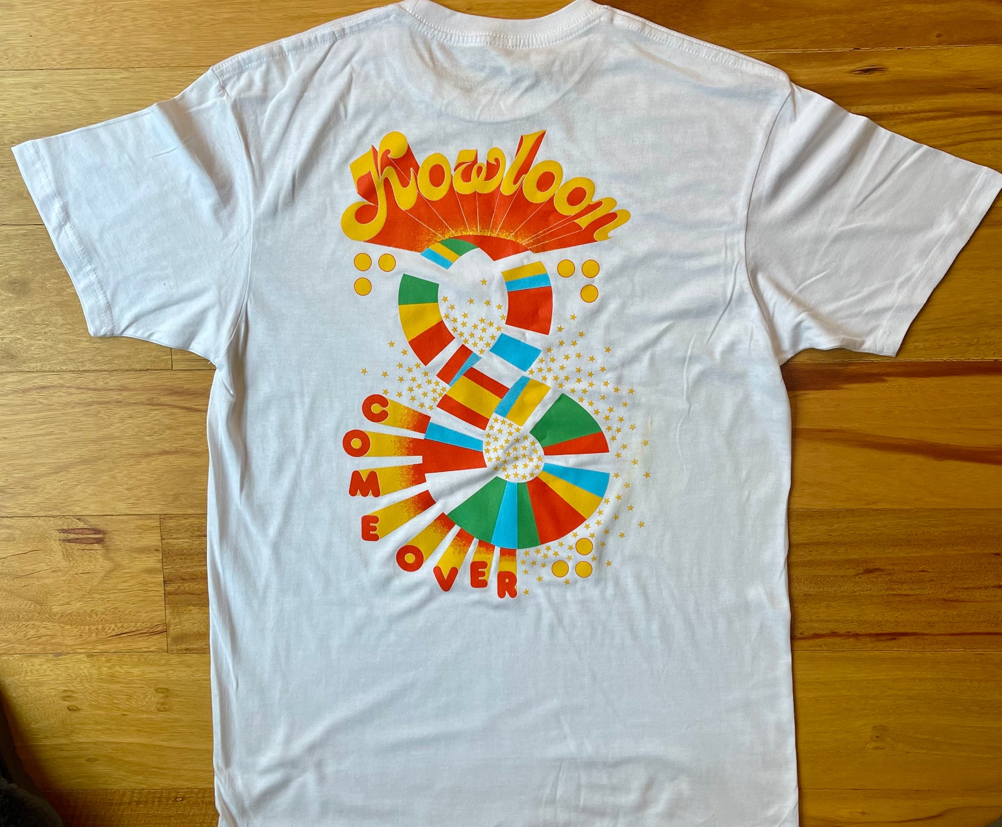 Kowloon COME OVER White Unisex Custom Screen Printed Fine Jersey Short Sleeved Tee.